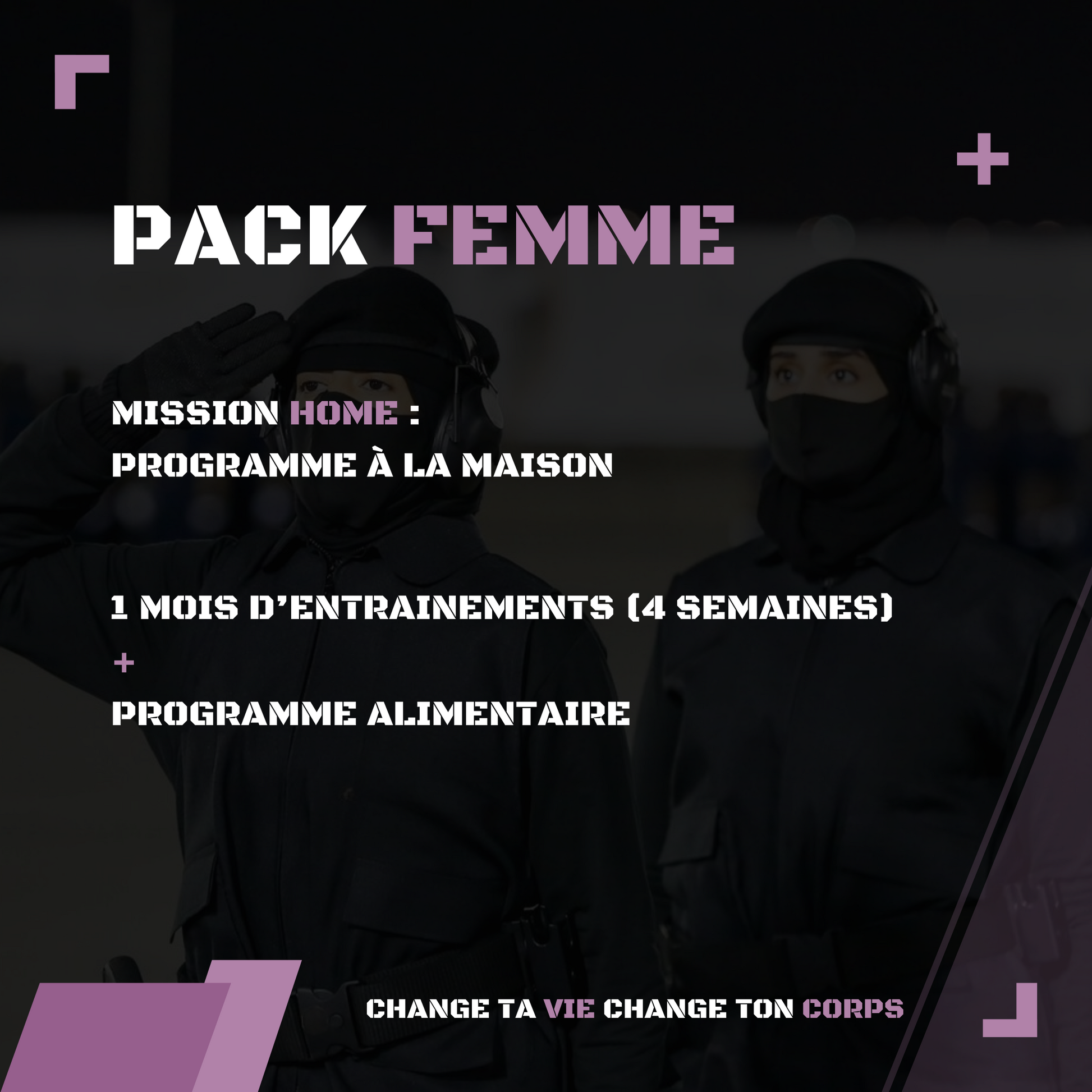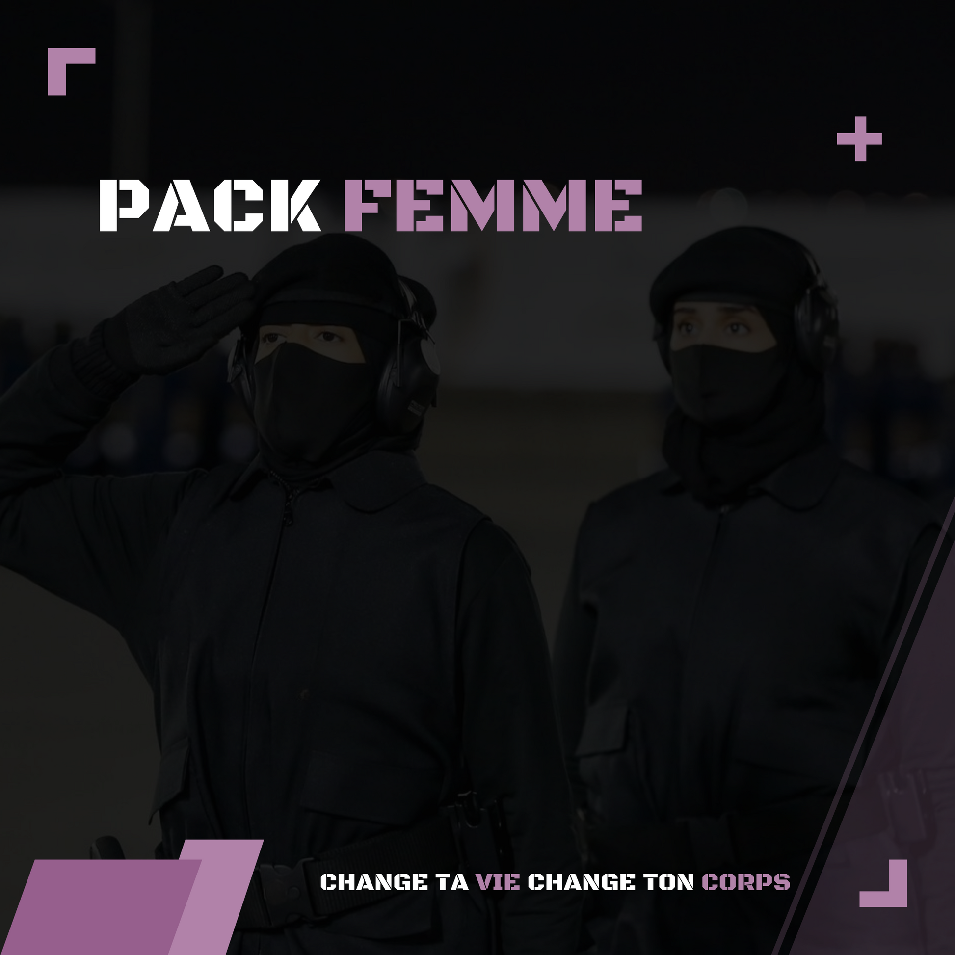 Le Pack Femme est l’ultime solution pour les femmes qui veulent se dépasser. Que tu préfères t'entraîner à la maison, ou dans un parc en extérieur, ce programme te permettra de sculpter ton corps, d'améliorer ta condition physique, et de transformer tes habitudes alimentaires.